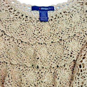 Denim 24/7 Oatmeal Layered Crochet Top Medium