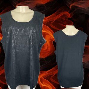 Denim 24/7 Plus 26/28 Black Sequin Scoop Neckline Ribbed Trim Sleeveless Top