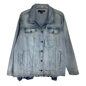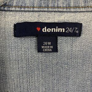 Denim 24/7 Plus Sz 20W 20 W Stretch Denim Jacket Zipper Sides Raw Hem Light Wash