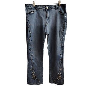 Denim 24/7 Side Leg Floral Embroidered Wide Leg Jeans Waist 35"