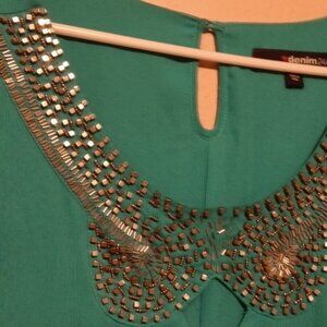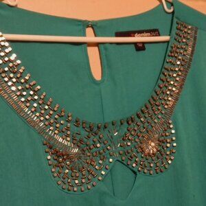 Denim 24/7 Teal Asymmetrical Dress with Silver Embellishments
