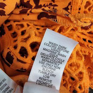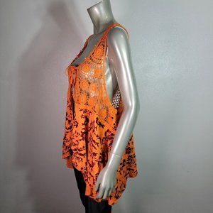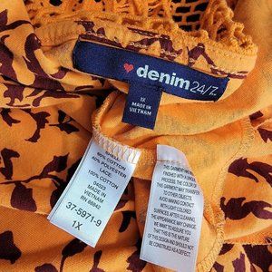 Denim 24/7 Top Plus Size 1X Crochet Stretch Open Tie Front Square Neck Orange Floral Sleeveless Casual Cotton