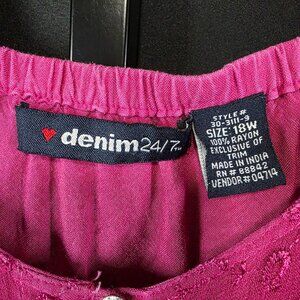 Denim 24/7 Tunic Blouse Womens Plus 18W Pink Boho Peasant Embroidered Button Fro