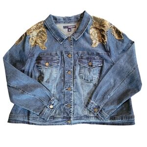 Denim 24/7 Wmns Plus 30W Blue Denim Gold Beaded Sequins Jacket Embellished Bling