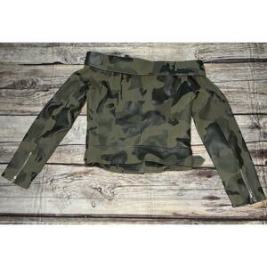 Denim 4 US Women's Off the Shoulder Camouflage Moto Jacket Size Small Camo