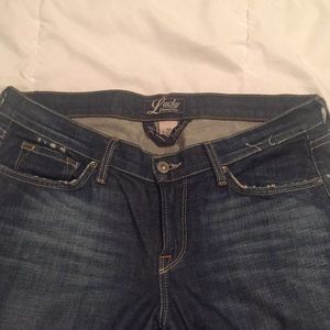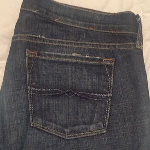 Solid denim great embroidery on pockets! Comfortable fit.
