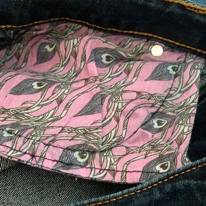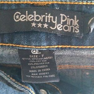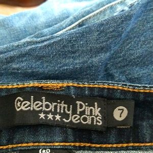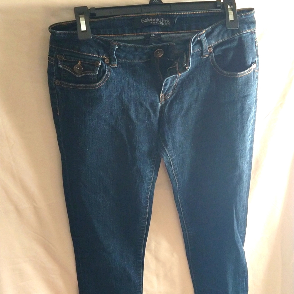 celebrity pink skinny size 7. 5 pocket dark blue denim. inside pocket nice design of you wanted to distress.