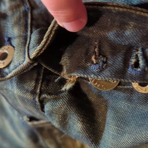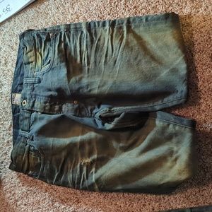 PRPS men's jeans size 31 waist. some wear to the fly as well as to the bottom/backs. All parts and pieces are fully functional. the wash is more of a dirty blue??