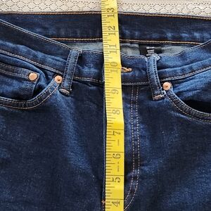 H&M & Denim Skinny Fit Jeans Men's Size 32x32 in nice condition no stains button and zip closure 5 pockets 5 in. ankle 11 in. rise 28 in. inseam. Elevate your style with these classic dark blue skinny jeans. Perfect for any casual outing, these jeans offer both comfort and a sleek look.