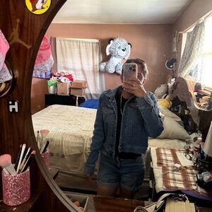 Denim jacket size xs , worn it few times but don’t want it anymore , don’t like how it fits me now