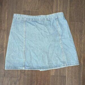 Elevate your wardrobe with this stylish denim A-line skirt. Featuring a classic button detail, this skirt is perfect for any casual outing. The blue hue adds a timeless touch to your ensemble.