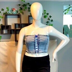 Denim Acid Wash Blue Lace up Tube Top Size Large RefM101
