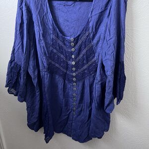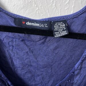 Denim Assymetrical Top Women’s Plus Sz 26 Blue 3/4 Bell Sleeve Rena Fairy
