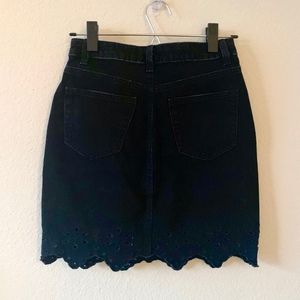 Denim Black Skirt w/ Floral Cut Out Hem Detail