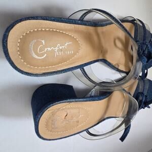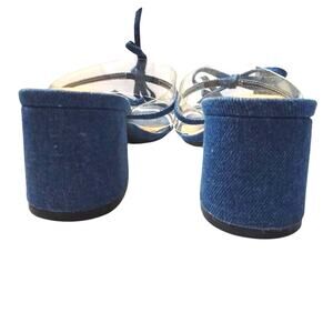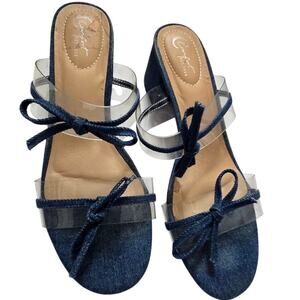 Denim Block Heel Sandals Size 8M Strappy Bow Slide Heels Blue Open Toe Y2K