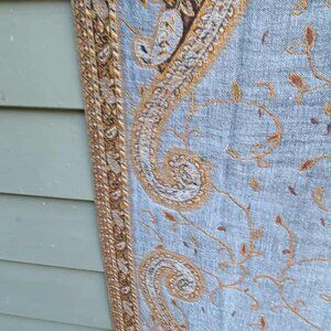 Denim Blue Brown Gold Pashmina & Skilk Pashmina