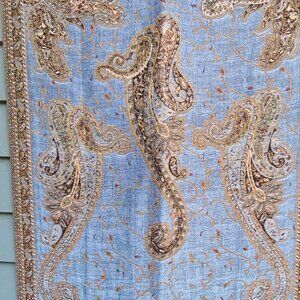 This is a beautiful pashmina in very very good pre owned condition. Pashmina = Cashmere This one is 45% silk and 55% pashmina. No holes rips or tears. Measures 72" + 6" Fringe x 28" I've dry cleaned the scarf.