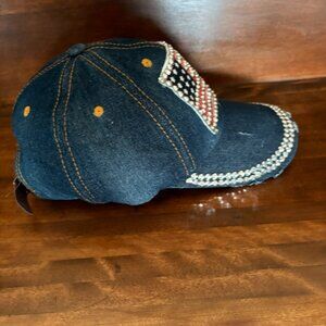 Denim Blue Unbranded American Flag Sequin Hat Leather Strapback Baseball Cap