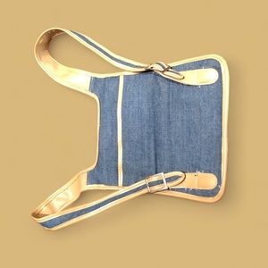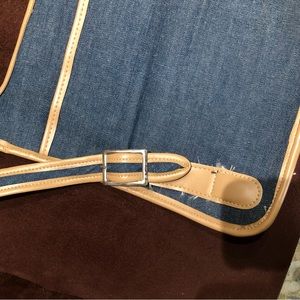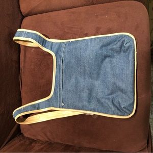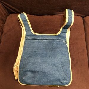 Denim Blue/Tan Trimmed Lightweight Back Pack with Double Compartments.