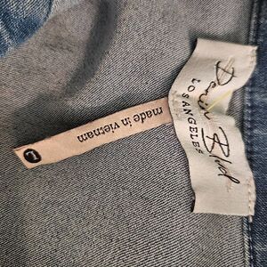 Denim Blvd stretch denim form fitting jumpsuit, high waisted, bootcut. Size L.