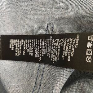Armpit to armpit is 17 inches unstretched, waist is 28 inches unstretched, rise is 13 inches and the inseam is 32 inches. 2 front pockets and 2 back pockets. Snap and zipper closure. Cotton/polyester/spandex blend. Excellent condition. Open to reasonable offers.