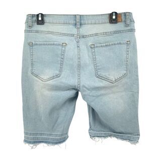 bermuda denim shorts, stretchy jean shorts, raw hem denim, light wash shorts, mid-rise denim shorts, denim shorts size large, women’s summer shorts, casual jean shorts, trendy denim shorts, festival outfit shorts, beach day denim, denim blvd shorts, raw edge jean shorts, comfortable stretch shorts, everyday denim