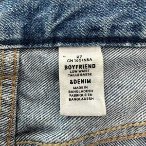 &Denim Boyfriend Low Waist Distressed Button Fly Women's size 27 Blue Denim Jean