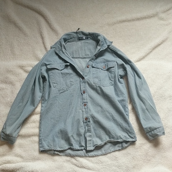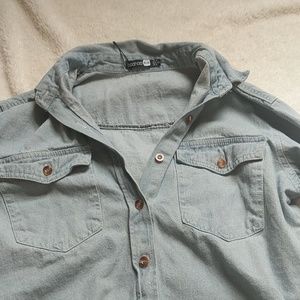 Boohoo denim collared shirt. Has a polo style neck. Button down.