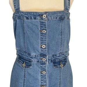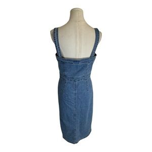 Denim Button Down Blue Jeans Midi Dress Vintage Vibes Stretchy Size M Pockets