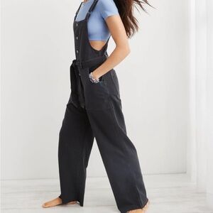 A classic with a twist! All the comfy of overalls meets a trendy, wide leg fit.