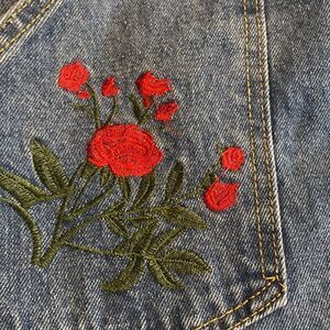 Denim Button Front Embroidered Jean Skirt Size S