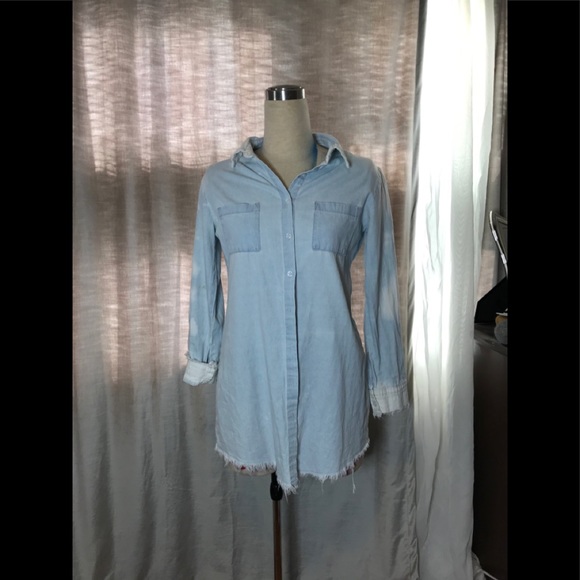 Denim Button Up, Can be worn as dress or shirt, Light Wash, Big Medium
