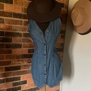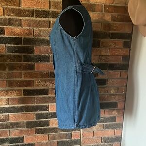 Stylish denim button-down dress. Great buckle in back for a more fitted look.