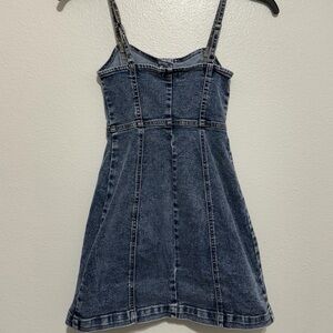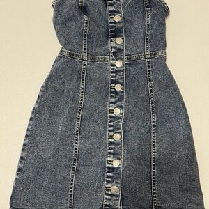 Chic and stylish denim mini dress with a button-front design. Perfect for casual outings.