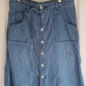 Stylish denim skirt with a button-front design. Perfect for casual outings.