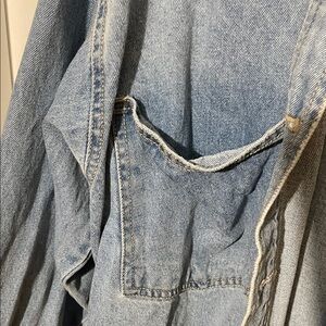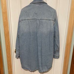 Stylish long denim button-up jacket (could be a dress). perfect for casual outings. Features a classic design with a comfortable fit.
