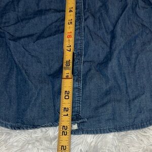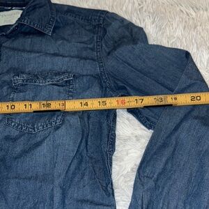 Stylish denim button-up shirt with front pockets. Perfect for casual wear.