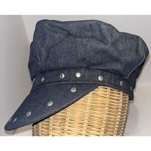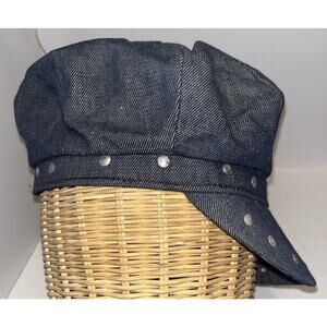 Denim Cabby Hat S/M Satin Lining Hippie Boho Village People Rivets