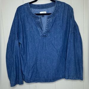 Denim Chambray 100% Cotton Long Sleeve Pullover Spit Neck Top Universal Thread Womens Medium