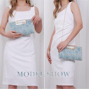 Denim Clutch Purse Women Evening Bag with Chain for Party Prom Formal