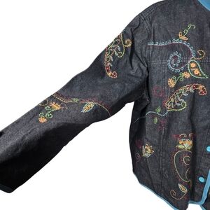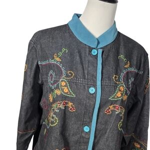Denim & Co 1X Black Denim Blue Trim Embroidered Button Down Shirt Jacket NWT