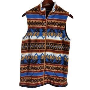 Denim & Co Aztec Fleece Vest S | Western Y2K Cabincore Rodeo | Horse Girl Layer