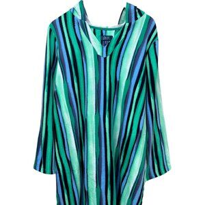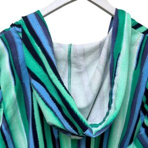 Denim & Co Beach Cover Up Plus Size 1X Blue Stripe French Terry Womens Hoodie