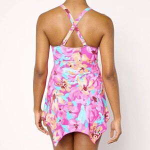 Denim & Co. Beach Hankerchief Hem Belted Swim Dress. 8074