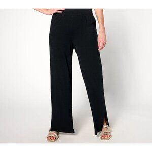 Denim & Co. Beach Jersey Tall Wide Leg Pant with Slits Black,Tall Large