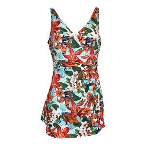 Features: V-neckline, elastic inside neckline, wrap front, self-brief attached at waist seam, adjustable back straps, chlorine-resistant