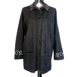 Denim & Co Black Button Front Denim Tunic Cotton Shirt Embroidered Size Small