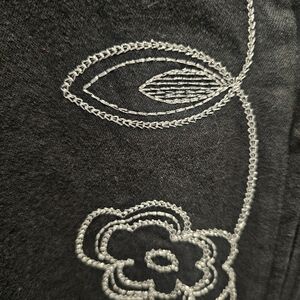 Denim & Co. Black Floral Embroidered Zip Jacket Size Large Metallic Thread