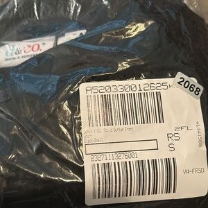 Features: button front with double button detail, two-ply stand collar, bust darts, turn-back placket, self-folded cuff, back yoke, double turn-back hem