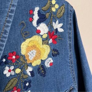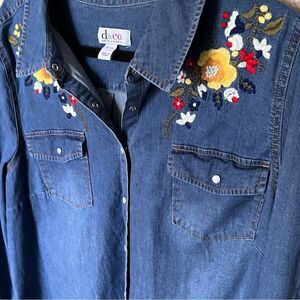 Denim & Co. Blue Denim Embroidered Floral Long Sleeve Button-Up Shirt Size XL